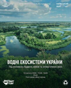 10 лютого 2026 року з 15:00 до 16:00 відбудеться онлайн-тренінг у Zoom на тему «Водні екосистеми України: річки, моря та океани під впливом людини, війни та кліматичних змін».